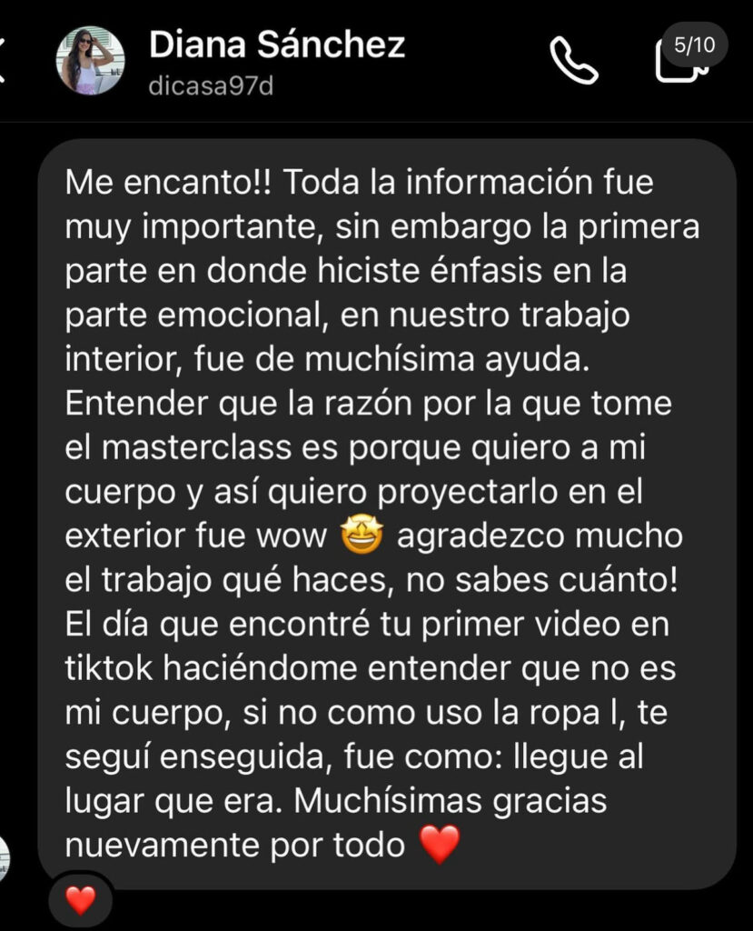 Por eso decidí crear este Masterclass: para que en un mes tan caótico como diciembre, tus outfits no sean una preocupación adicional, sino más bien una oportunidad para sentirte como tu mejor versión y brillar con autenticidad a cada lugar que llegues. De esta manera podrás concentrarte en lo más importante: disfrutar y crear memorias con las personas que amas, mientras te sientes tú misma y cómoda en cada momento.