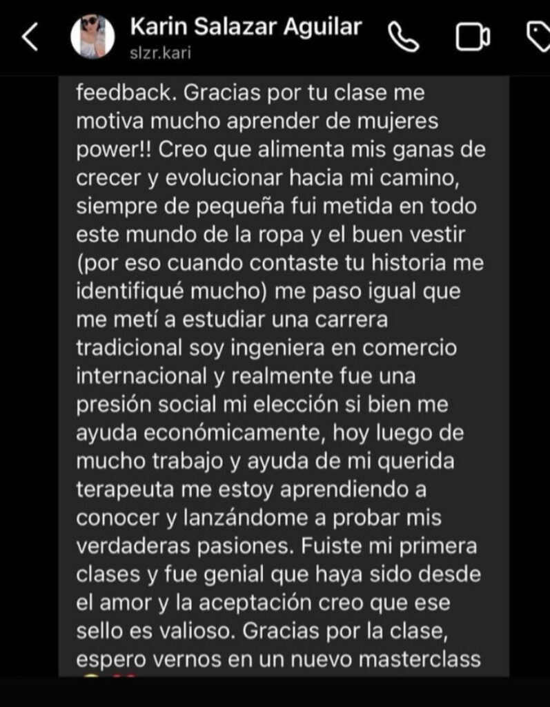 Porque la idea del masterclass es que, además de quitarte el estrés de vestirte para diciembre, puedas inmortalizar recuerdos donde te sentiste segura en cada ocasión que viviste este mes, y que al regresar a esa foto o esos recuerdos, pienses: “me sentía como mi mejor versión ese día, cómoda con mi look y comunicando mi esencia”.